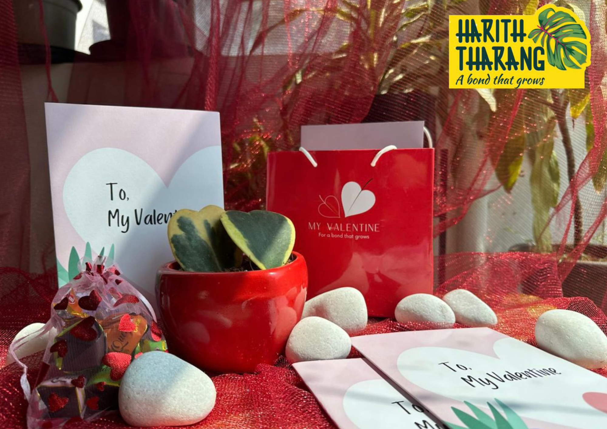 Among the offerings is a special Valentine's Day hamper—a thoughtful ensemble curated for those who cherish both nature and romance. The hamper features a red ceramic heart-shaped pot adorned with two variegated Hoya heart plants, symbolizing love and growth. Accompanying the plants is a pack of indulgent chocolates, a customized greeting card with a plant-themed design, and a red bag bearing a heartfelt Valentine's message. It's a perfect gift for the nature-loving Valentine, a gesture that celebrates both their passion for greenery and their appreciation for love in its purest form.