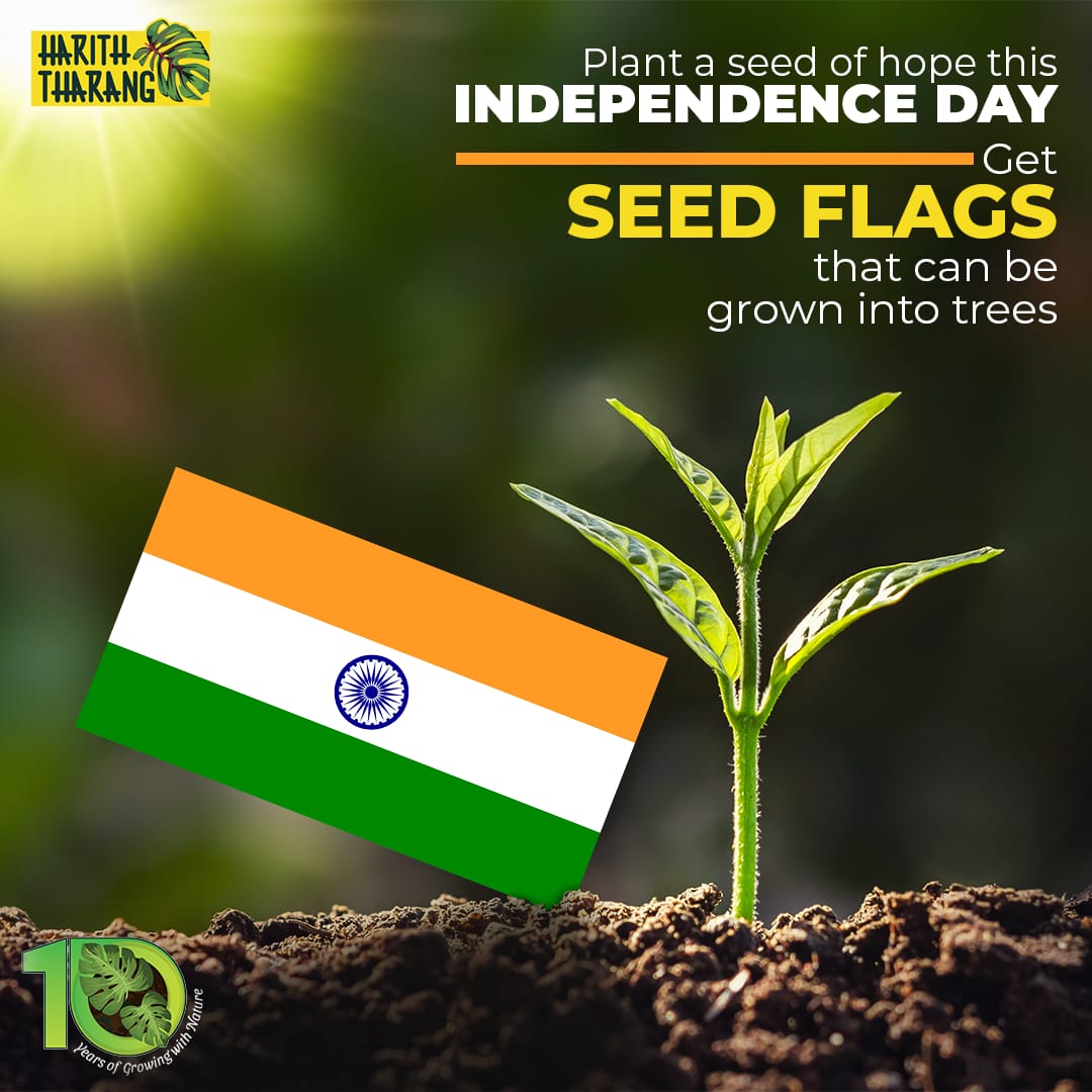 Fertility and growth just being the need of the hour, HARITH THARANG brings to you plant-able national flags. After use you can pot these flags, water them and see them sprout into saplings. DO IT THE GREEN WAY, THIS Independence day! Call us @9600120351 to get yours.