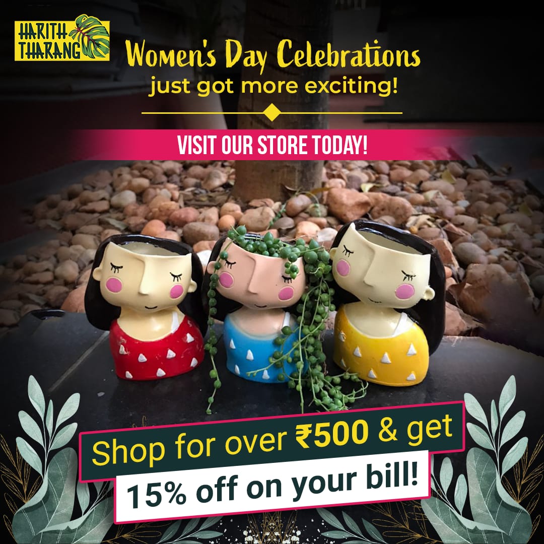 This women's day,.... along with love for all the women out there, we at HARITH THARANG, also brings lady planters with string of pearl from 399/- onwards and also mugs with women's day wishes from 375/- onwards.