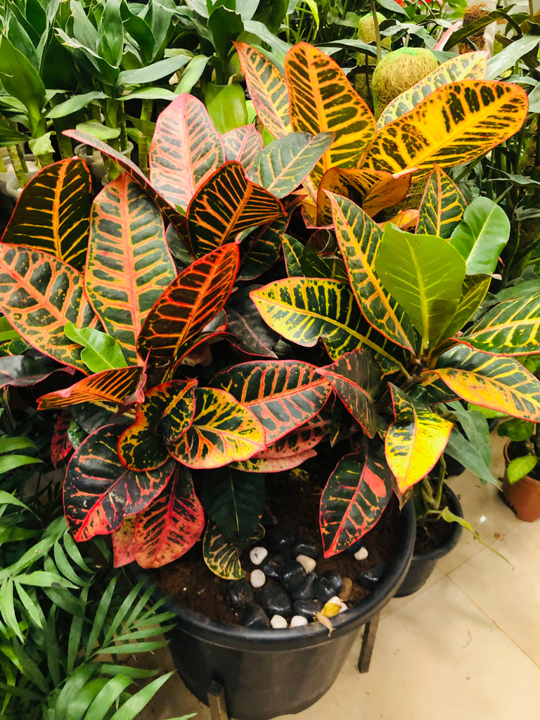 The croton "Petra" (Codiaeum variegatum “Petra”) is an evergreen shrub native to southern Asia and the western Pacific islands. It prefers hot, humid weather and grows indoors too, croton can be grown in containers and kept indoors during cold weather. This distinctive, variegated plant needs special care to stay healthy in all climate zones.